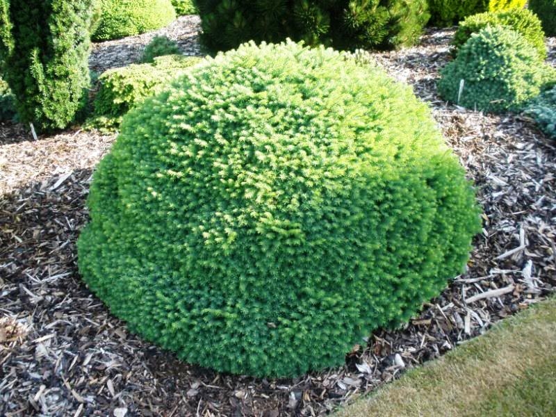 Форма: Привитый ценный сорт ели сербской. Компактное карликовое деревцо с подушковидной формой кроны. Растение похоже на зеленого ежика. Достигает в высоту 50—60 см при диаметре кроны около 1—1,2 м.
