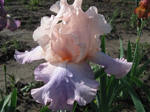 Celebration Song обладает абрикосово-розовыми стандартами. Фолы лавандово-голубые, бородка мандариновая. Гофрированный. Цветение продолжительное. Длительного цветения.