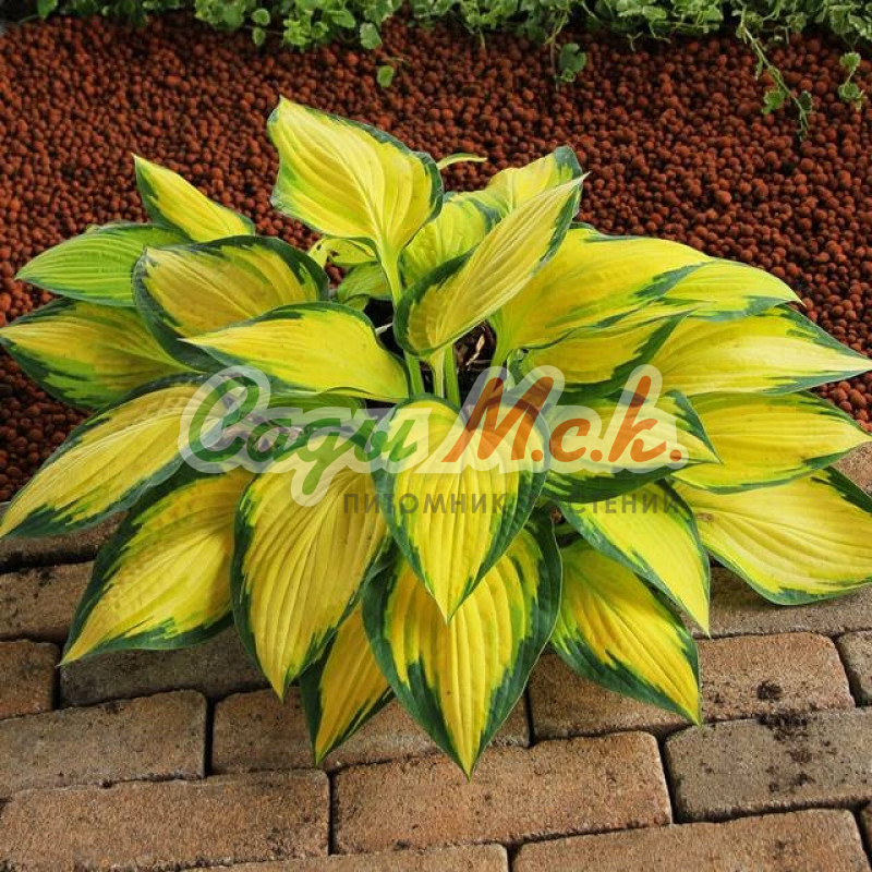 Хоста гибридная Велвет Мун хорошо приживается на новом месте и весной дает обилие молодой поросли, которая быстро формирует красивый куст с высотой около 60 сантиметров. Один из немногих сортов, листва которого устойчива к солнцу, оттенки не выгорают под воздействием солнечных лучей. Достаточно крупные листья обладают основным темно-зеленым оттенком и имеют очень широкую золотисто-желтую кайму. Цветет растение в июле бледно-лавандовыми цветками. Хоста гибридная Велвет Мун эффектно будет смотреться в ландшафтных композициях с разными растениями ― хвойными, декоративнолистными или цветущими.