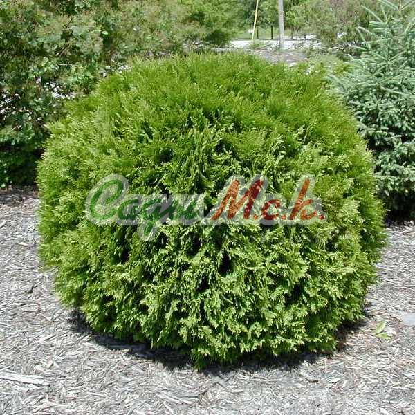 Крона шаровидная, позднее становится более широкой, вырастает в высоту до 1,5 метров в 10 лет. Одна из немногих туй, которая обладает округлояйцевидной формой кроны и достаточным ростом, чтобы выступать в качестве солирующего растения в композициях. Побеги густые, прямые , плоские. Хвоя от темно-зеленой до светло-зеленой. Плоды – маленькие коричневые шишки.